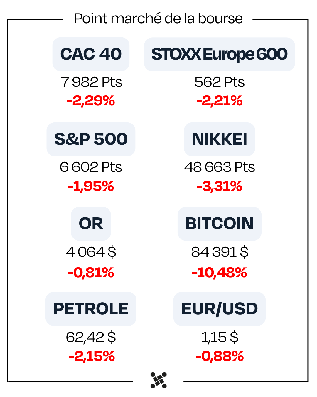 Le 5 novembre nous avions alerté sur des signaux de surchauffes que nous avions identifié sur les marches US qui depuis ont chuté de près de 6%, vous pouvez retrouver l’analyse ici :
